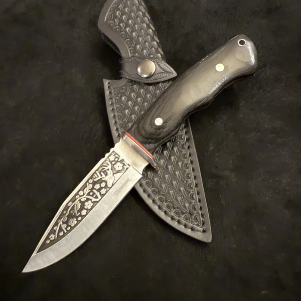 Руски ловен нож ОХОТНИК 65х13 с полирано остгравирано острие