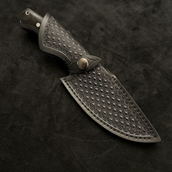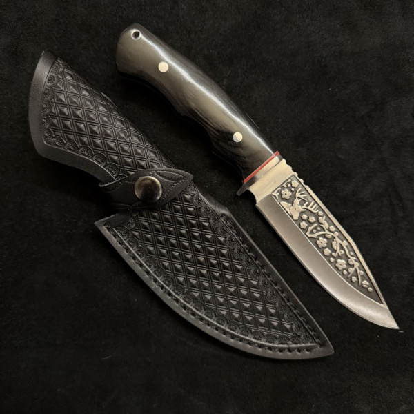 Класически ловен нож ОХОТНИК, фултанг от стомана 65х13 с гравирано острие и стоманен асиметричен гард - класика