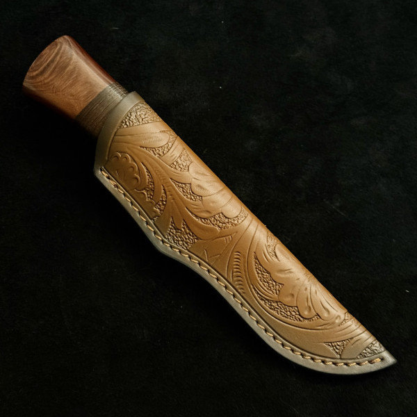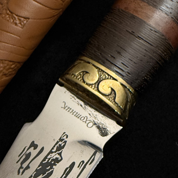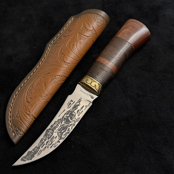 1149 Отзива за Руски ловен нож ОХОТНИК ВОЛК, стомана 65х13, кожена кания, дръжка орех и венге