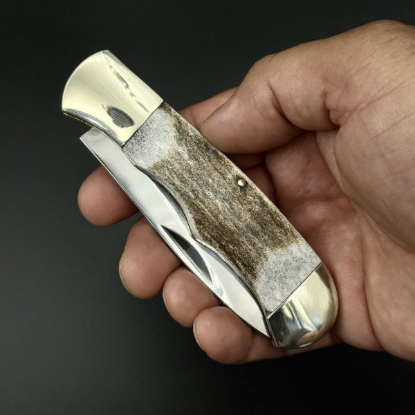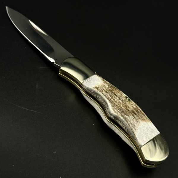 Сгъваем немски ловен нож Der HUNT МК-2, стомана 9Cr13, месинг и чирени еленов рог
