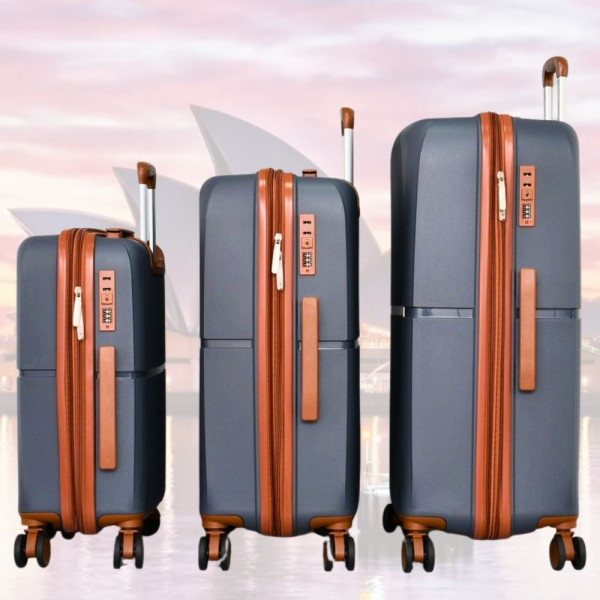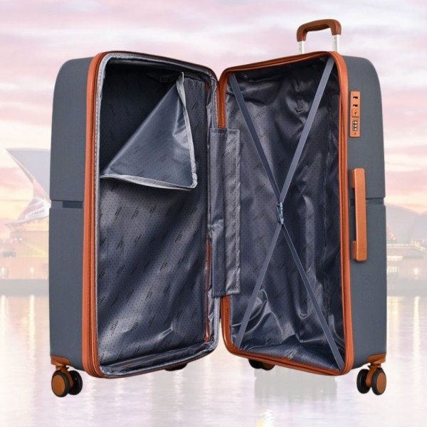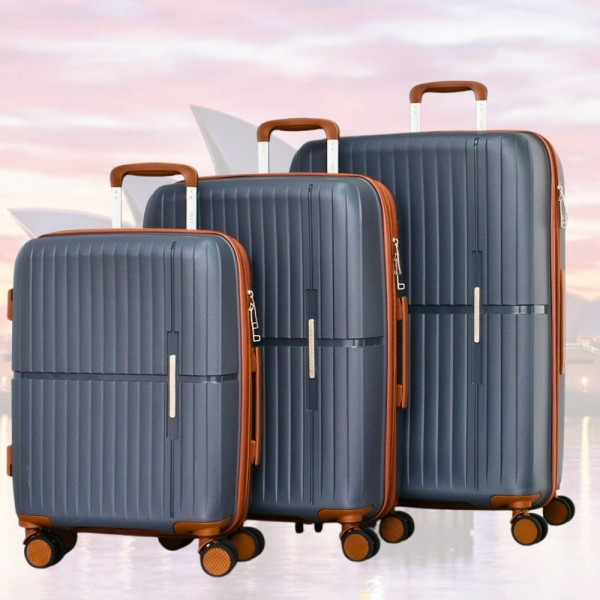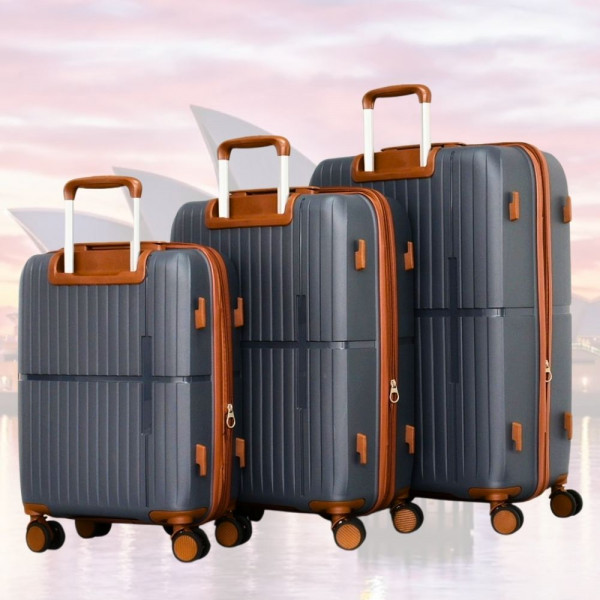 Стилен комплект от 3 броя куфари GREY - малък, среден и голям, авиокуфари от полипропилен - 2007- тъмно сив