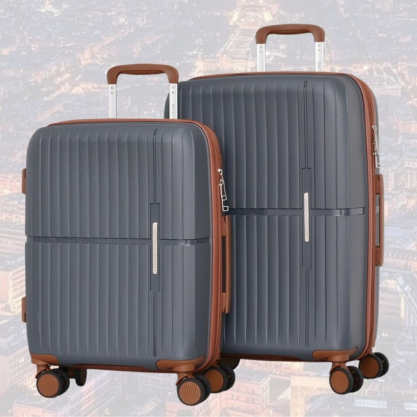 Стилен комплект от 2 броя куфари GREY PRIMA - малък и среден, авиокуфари от полипропилен - 2007-1 - тъмно сив