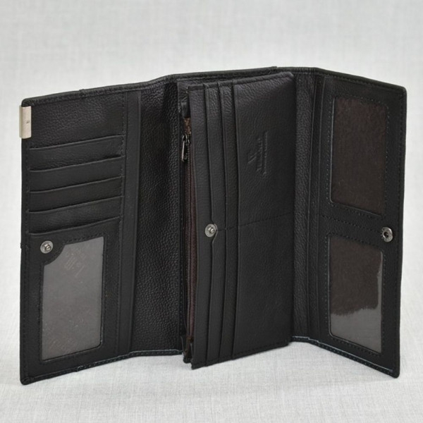 1149 Отзива за Стилно черно портмоне от естествена кожа с много отделения - BLACK - 4205