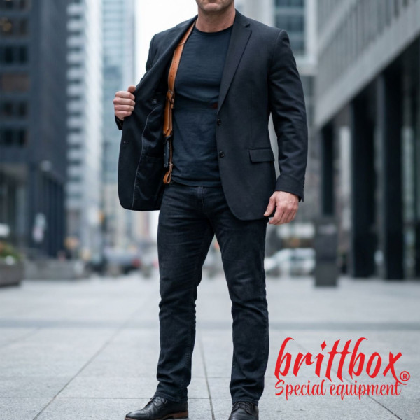 Тактически нагръден/раменен кобур BRITTBOX HOLSTER CLASSIC BROWN RIGHT: ДЯСНА ПОЗИЦИЯ (ДЯСНА ПОДМИШНИЦА)