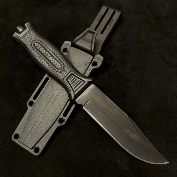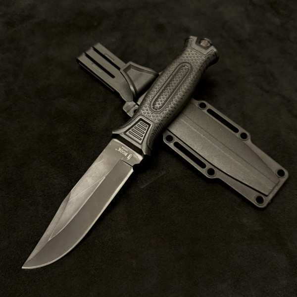 Перфектен тактически нож BGOK 2958A BLACK, твърда кания за колан, стомана 420, гумена дръжка, шило за лед. Красив, удобен - съвършен