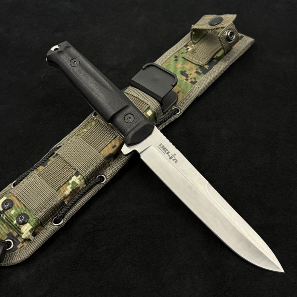 Последната част от перфектната визия на този нож е твърдата кания от типа Kydex, „облечена“ в камуфлажен здрав текстил. Kydex е материал, който първоначално е бил препдопичан в авиацията, заради липсата на дефекти и здрава структура при голямо налягане и разлика в температурата. Заради полимерната си основа, калъфът никога няма да ръждяса. Специалната структура не позволява на мръсотията да се задържа в канията и ножът ви винаги ще е на сигурно място. Aggressor от серията Tactical Echelon е създаден, за да ви гарантира успех и защита, както в природата, така и на бойното поле. Без компромис.