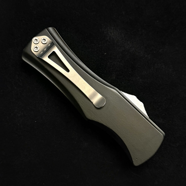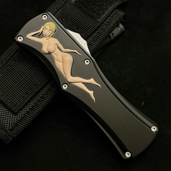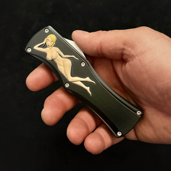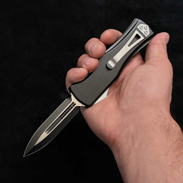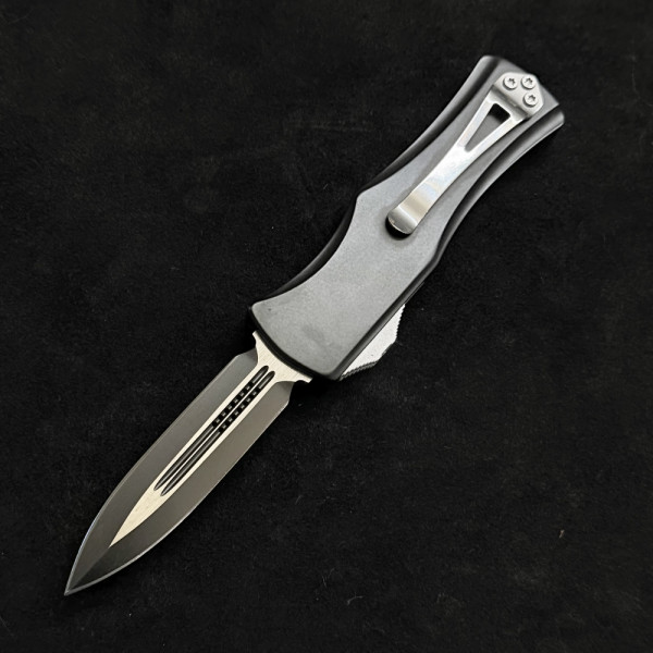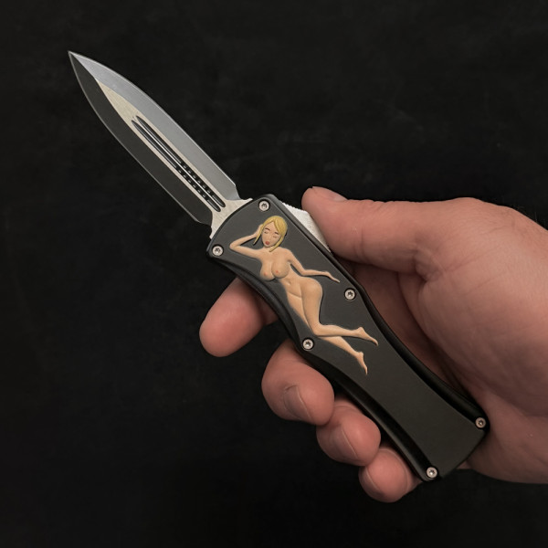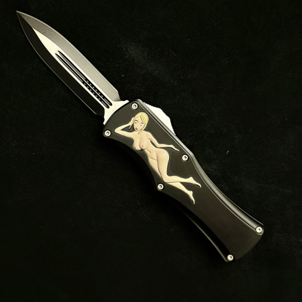 Солиден безотказен автоматичен нож- кама с канали, метален корпус и стоманен клипс за закачане на колан. Забавна апликация ..., но абсолютно сериозно острие