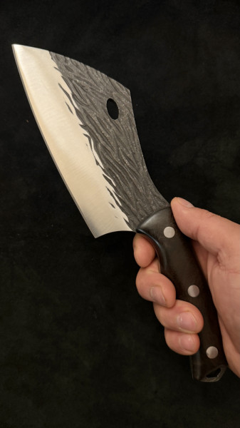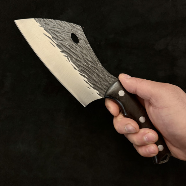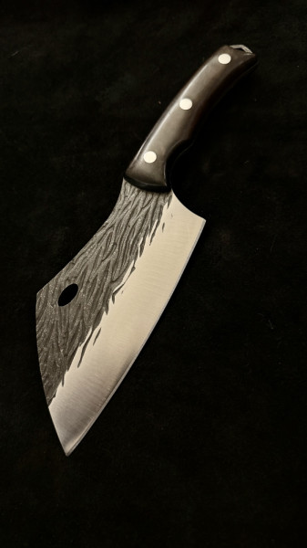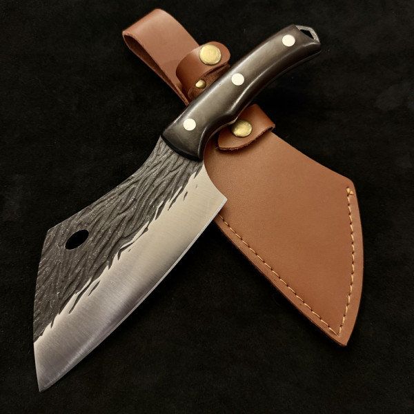 Тежък кухненски нож - сатър - AXE 132, фултанг, дръжка махагон, манганова (хадфийлдова, "железопътна") стомана