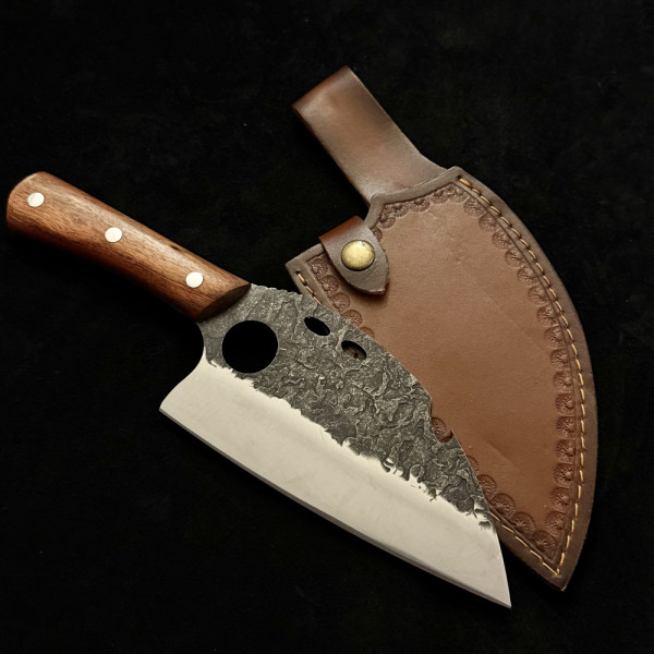 Тежък кухненски нож - сатър - AXE 144, фултанг, дръжка ясен, манганова (хадфийлдова, "железопътна") стомана