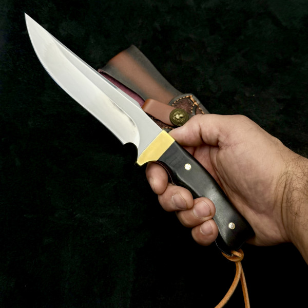 1149 Отзива за Тежък ловен нож Der HUNT 256, фултанг, стомана 7Cr13mov , дръжка махагон, гард месинг, гравирана кожена кания