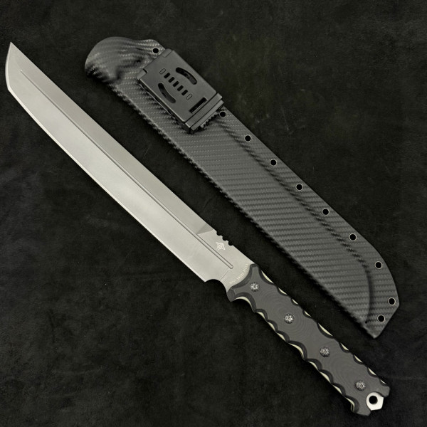 Тежък двуръчен японски меч HOLY SWORD VILLA WAKIZASHI, фултанг стомана US 5160, дръжка G10, кания KSheat carbon, висок клас изделие
