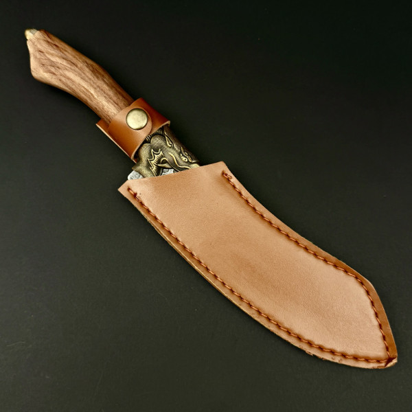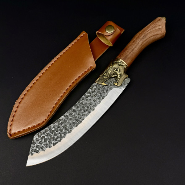 1149 Отзива за Тежък готварски нож Hunter’s Curve DRAGON, за разфасоване, стомана 5Cr13Mov, дръжка розово дърво и месингов DRAGON гард