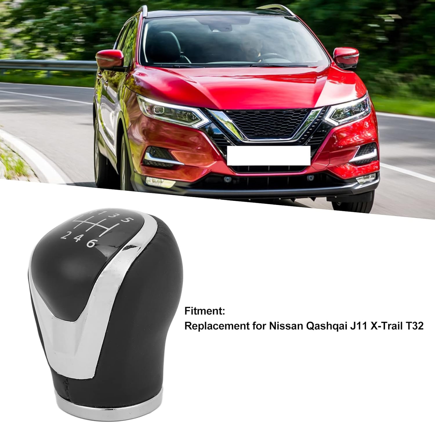 Топка за скоростен лост, предназначена за автомобили Nissan с 6-степенна ръчна скоростна кутия. Продуктът е изработен от висококачествена ABS пластмаса и еко кожа, които осигуряват устойчивост на износване, здравина и удобен захват при превключване на скоростите.