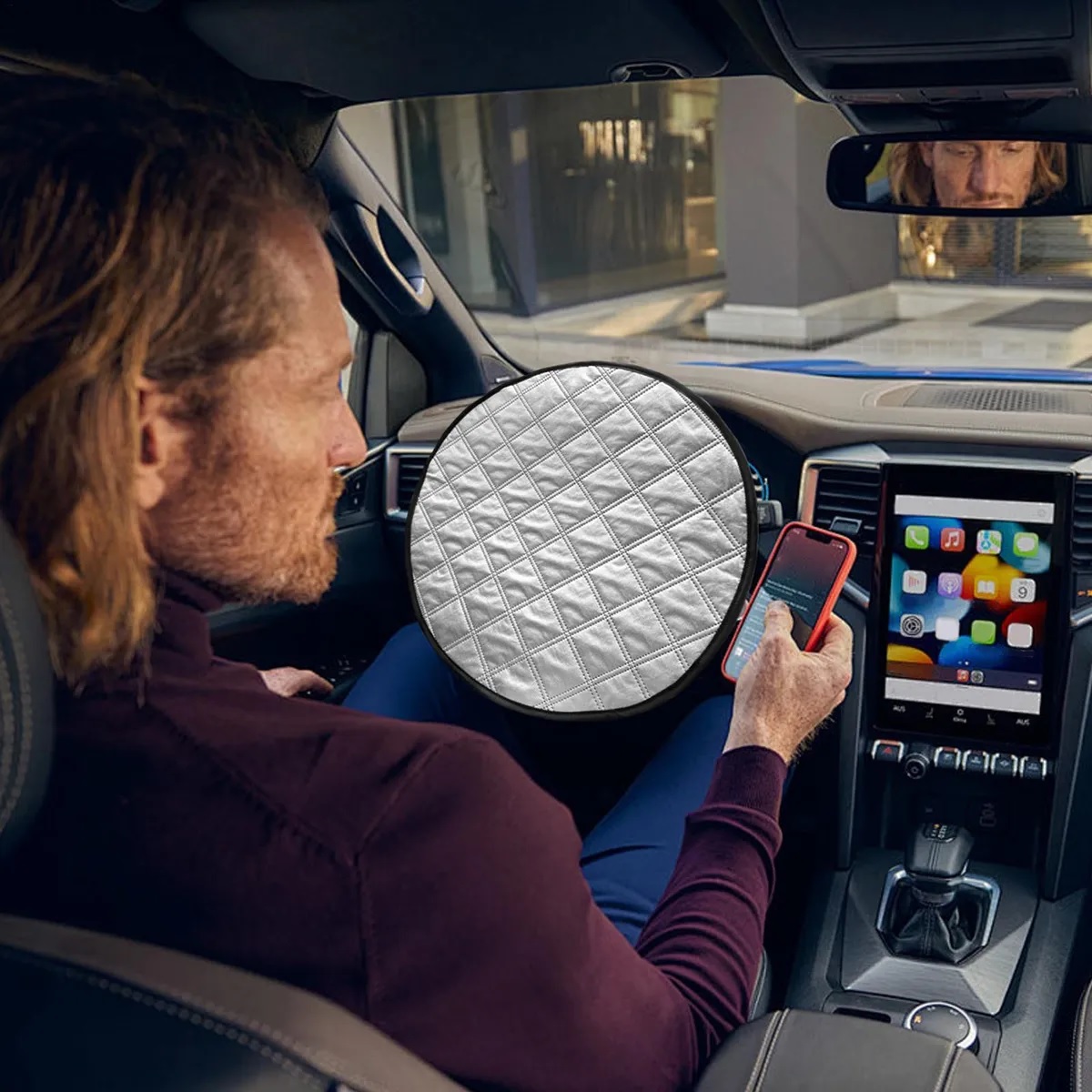 Универсален калъф за автомобилен волан - сенник за волан 43cm с текстилна подплата за защита на волана от слънцето и високи температури