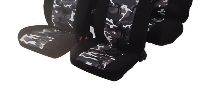 Универсални калъфи, тапицерия за предни и задни седалки за автомобил, джип - пълен компкект в цвят черно-сив камуфлаж