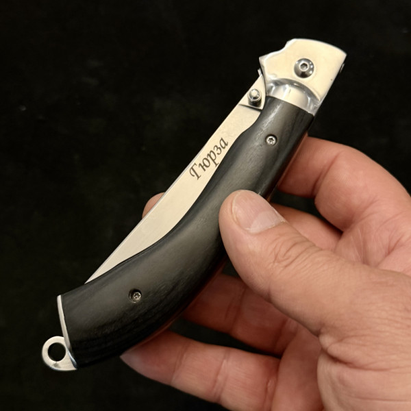 Ревю на търговеца: ГЮРЗА много изчистен, елегантен сгъваем нож с безотказен механизъм за лесно и бързо отваряне и сигурно заключване. Ножът е с премиум качество на изработката и материалите, стоманата 65х13 е с добра твърдост - 59HRc, износоустойчива и с много издръжлив режещ ръб. Ножът е с ергономична форма на дръжката и острието, което му дава широкоспектърна употреба за лов, роболов, къмпинг и туризъм. Класен подарък за всеки ценител.